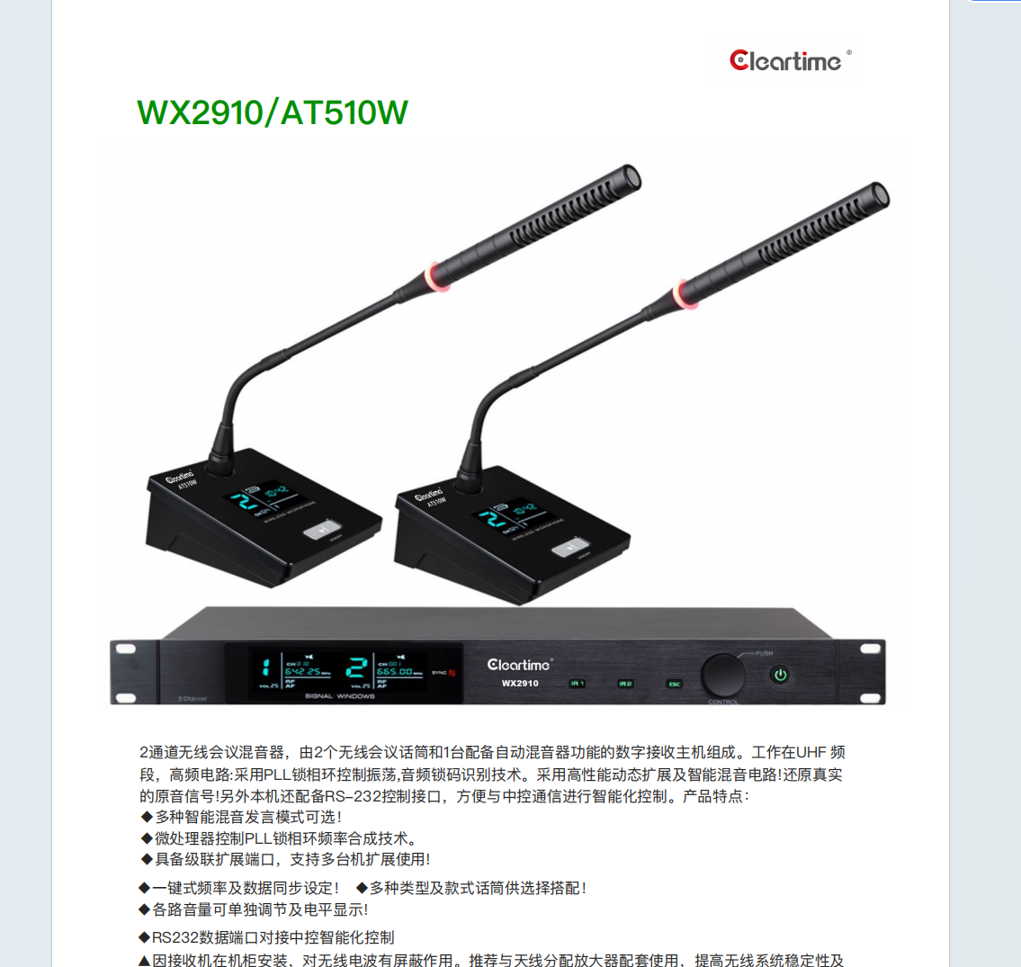 朗谷Cleartime无线麦克风 WX2910/AT510W无线会议话筒