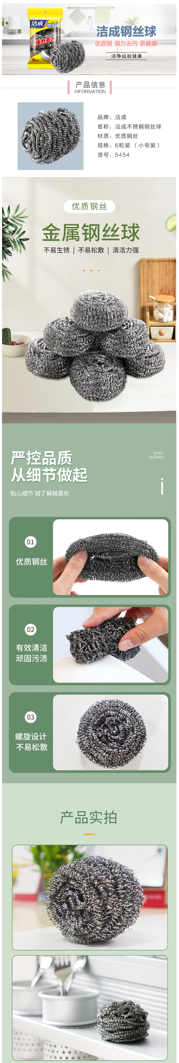 洁成 金属钢丝球不锈钢清洁球6只装 去垢去油污