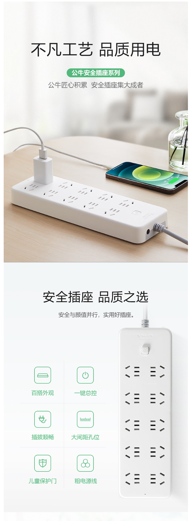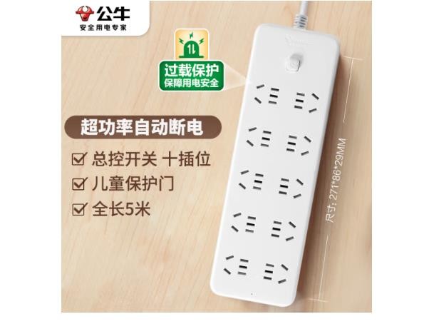 公牛(BULL)GN-B20A0 新国标插座/插线板/插排/排插/接线板/拖线板/ 工业插座 10位总控全长5米